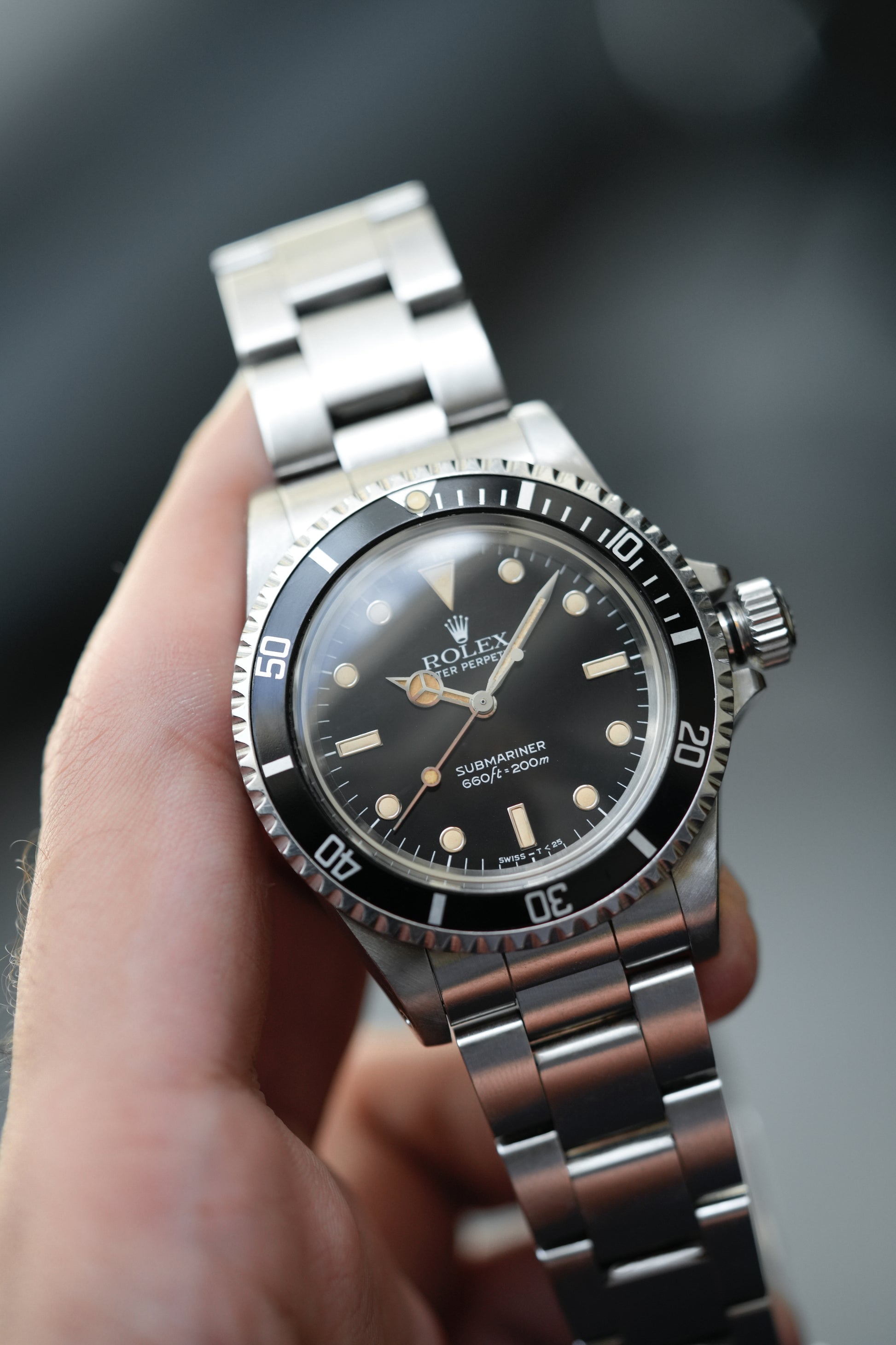 1987 Rolex Submariner Ref 5513 – 40mm featuring a clean matte black dial with a gorgeous orange-cream patina.