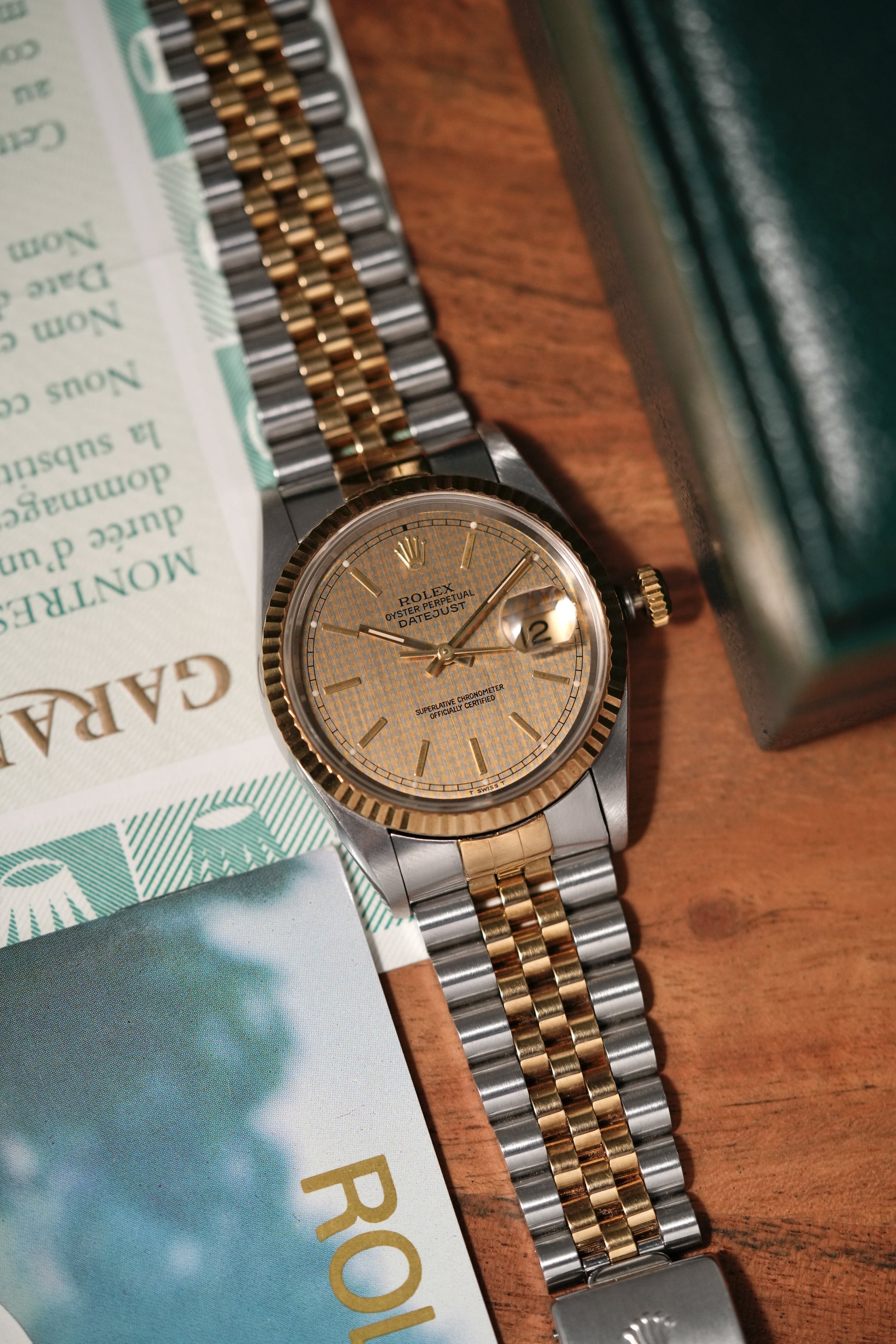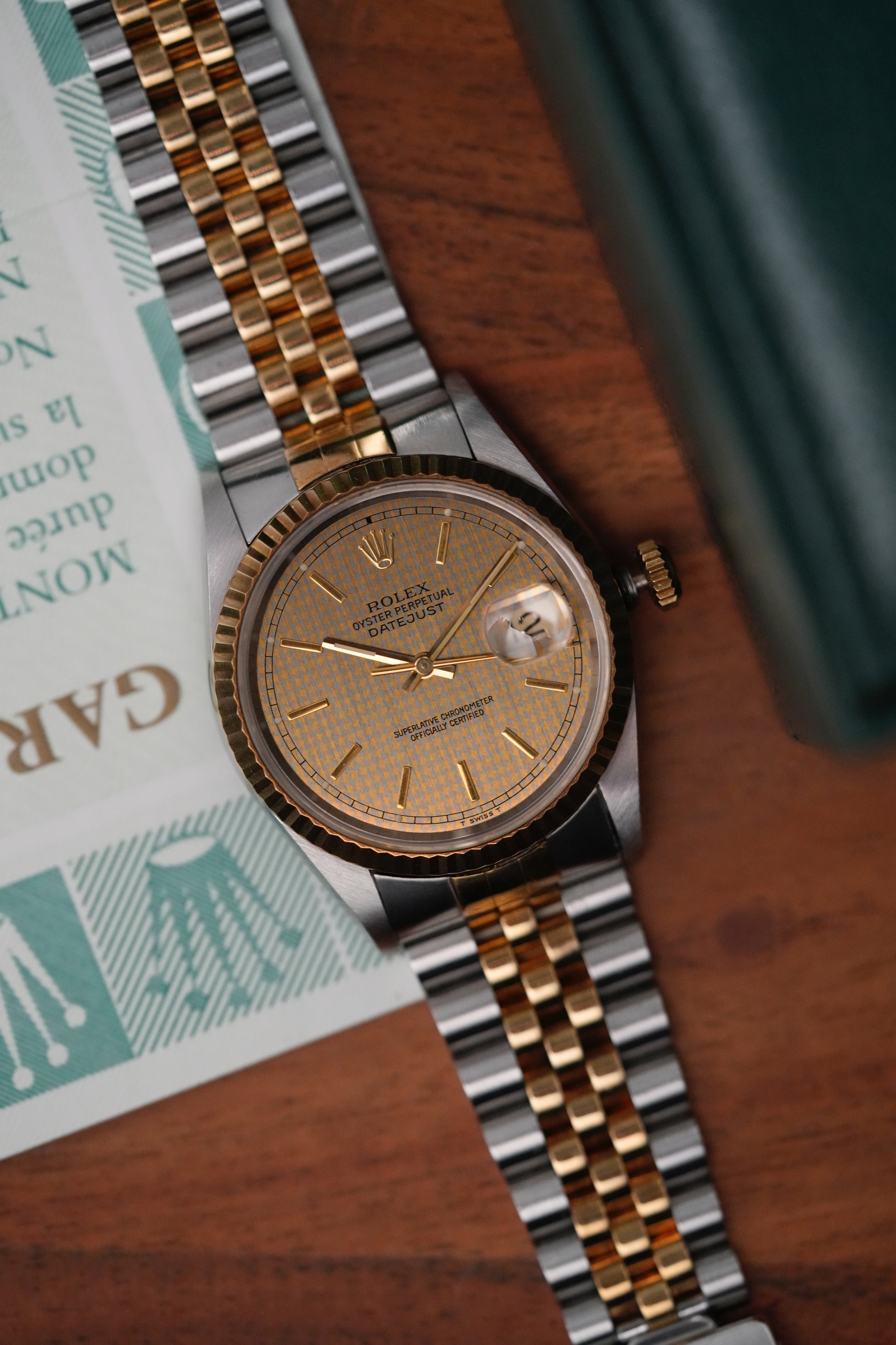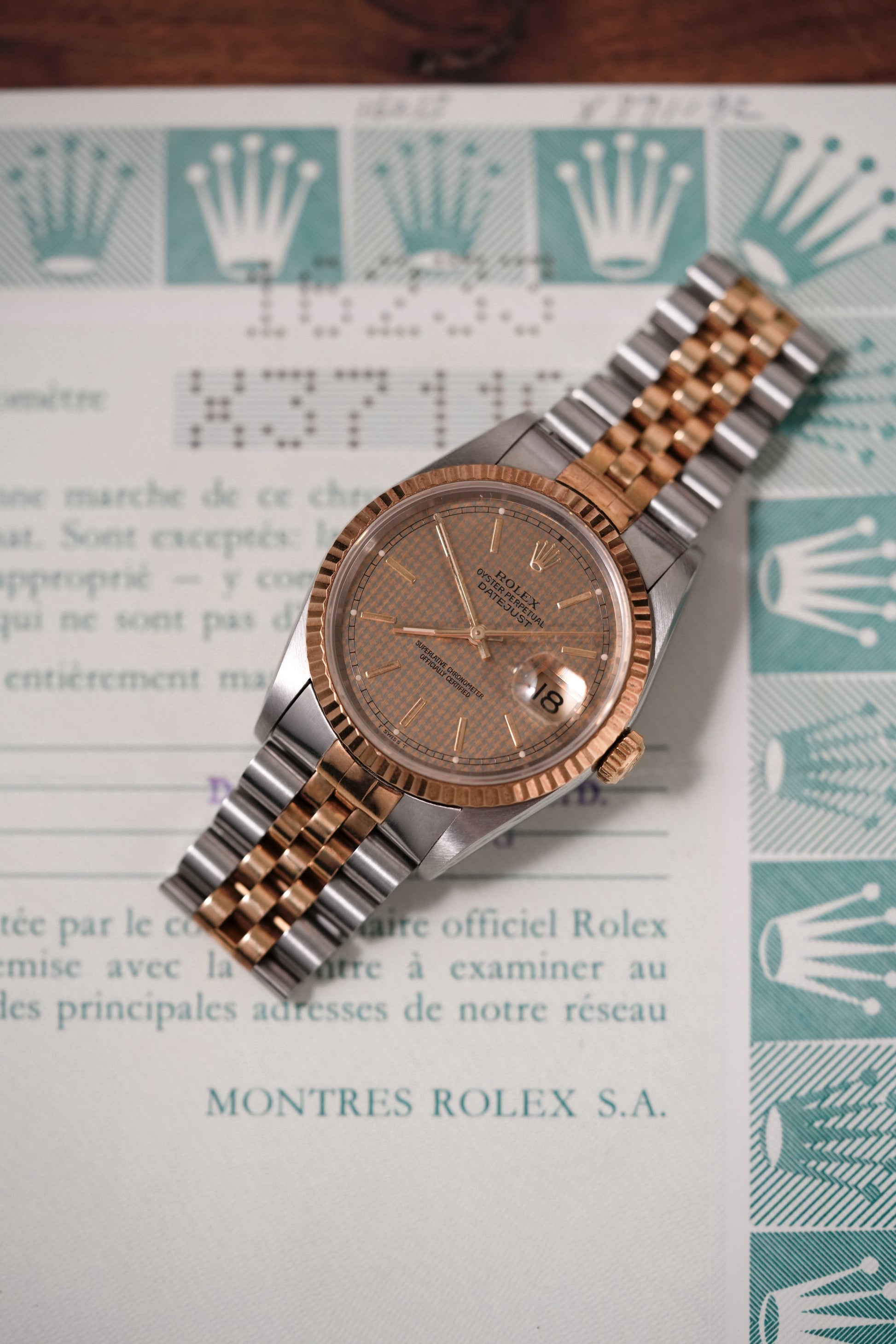 1993 Datejust Ref. 16233 – 36mm in steel and 18ct yellow gold featuring a rare and discontinued Houndstooth dial.