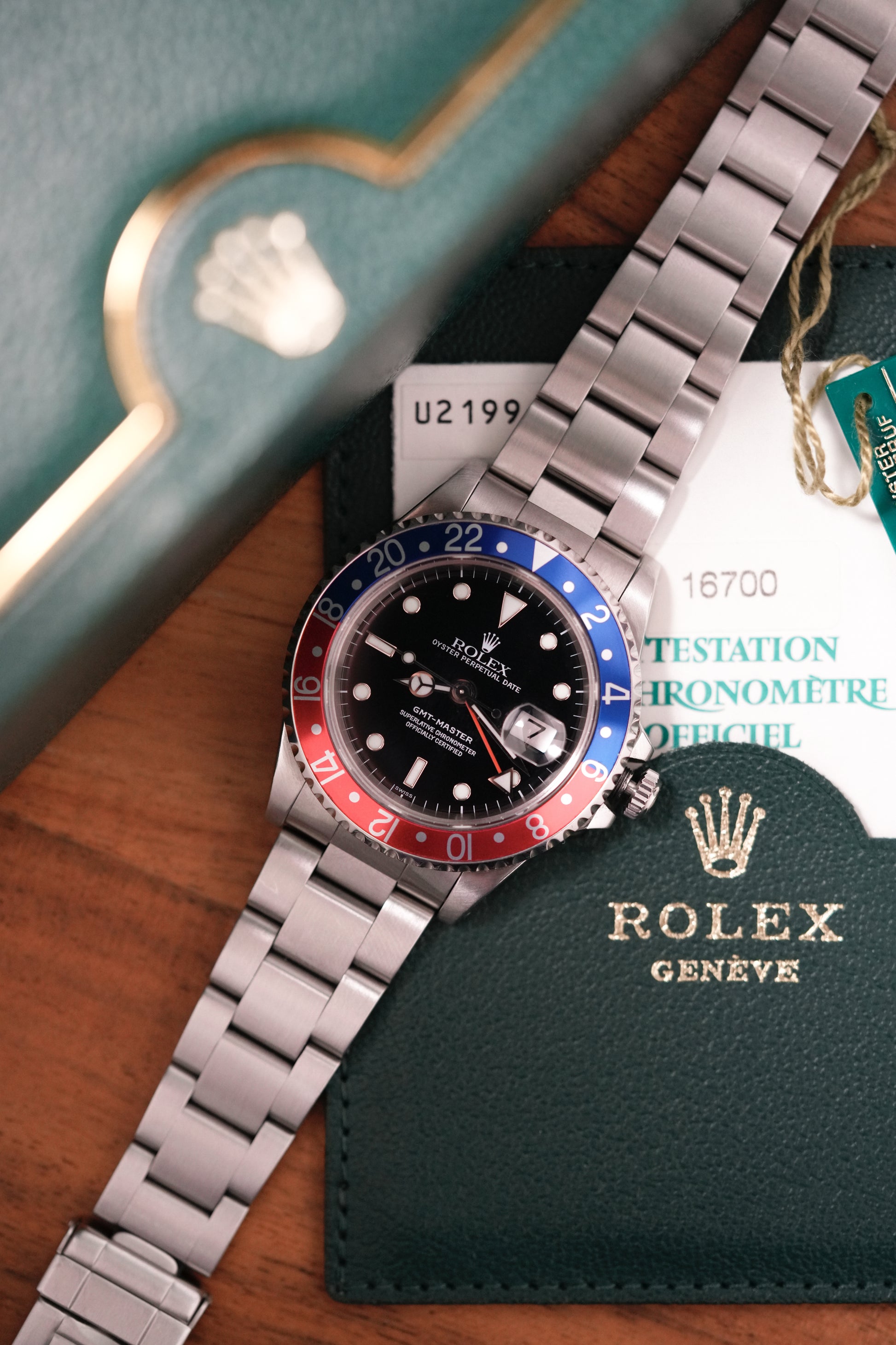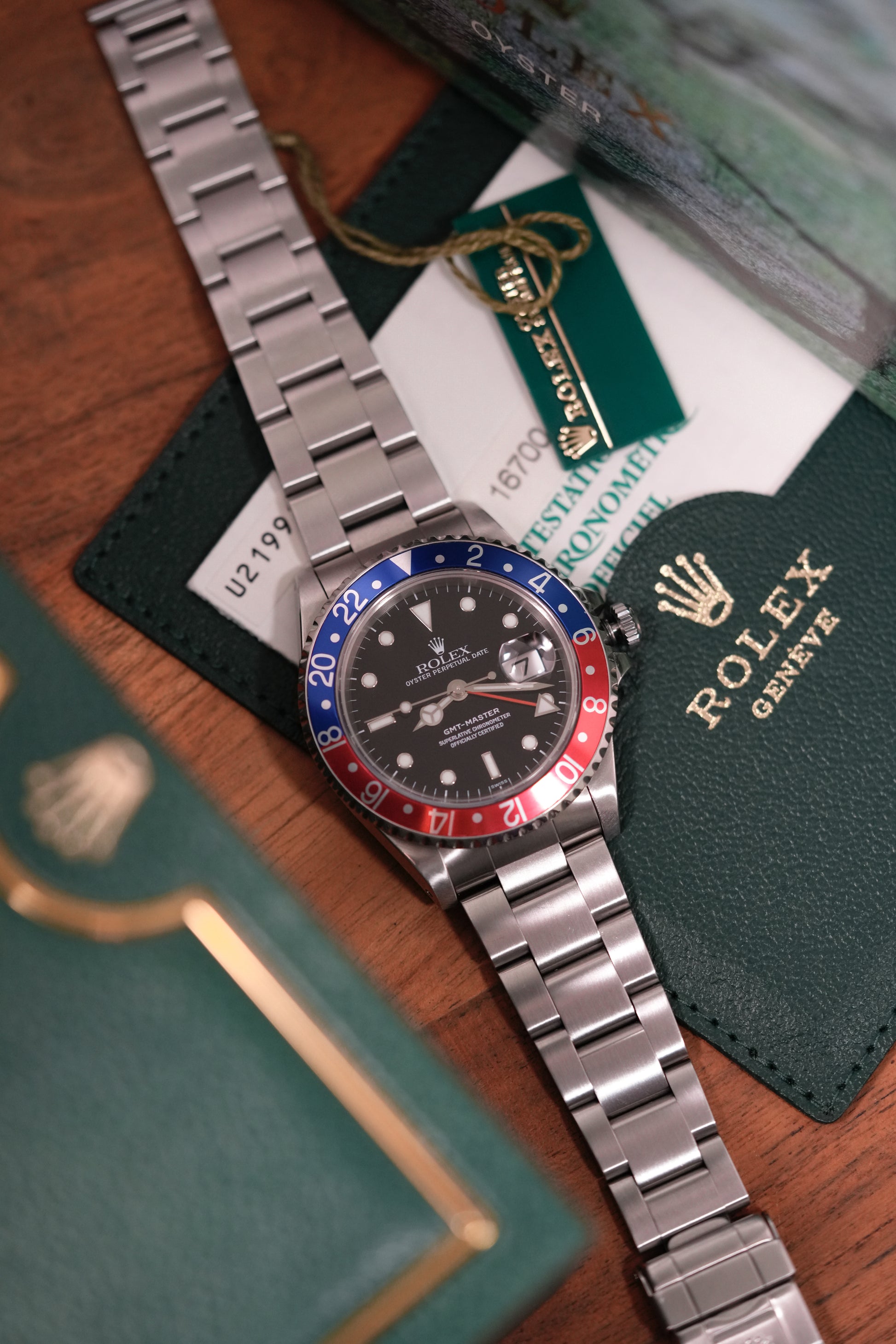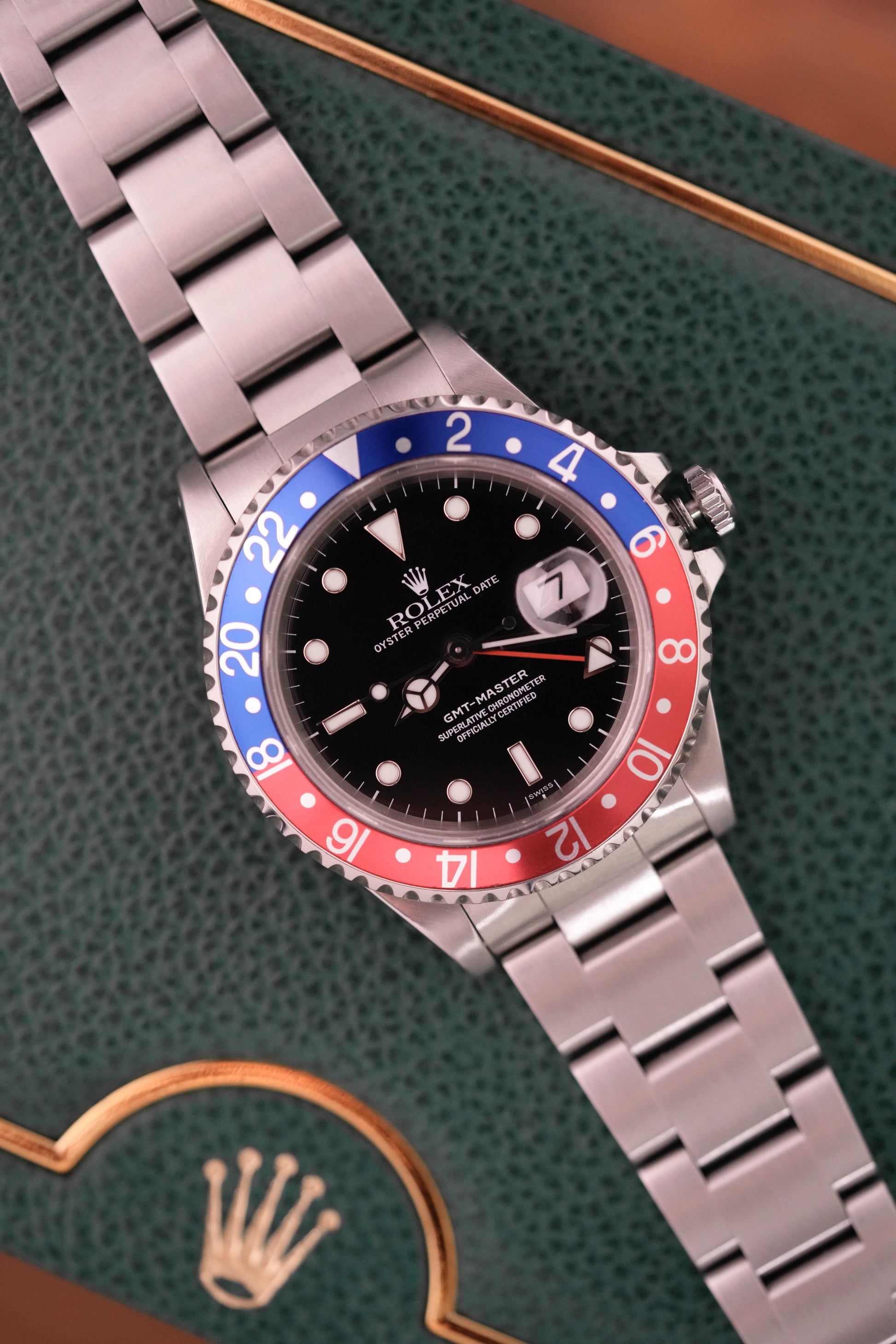 1999 Rolex GMT-Master Ref. 16700 – 40mm featuring the iconic "Pepsi" red and blue bezel.